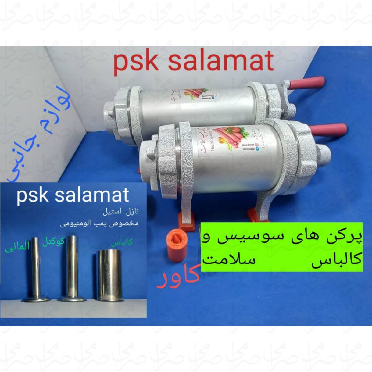 دستگاه پمپ سوسیس فلزی برند سلامت صرفا جهت پمپ کردن مواد آماده و ترکیب شده به داخل کاور یا غلاف سوسیس و کالباس می باشد و کاربرد چرخ و میکس مواد را ندارد.
