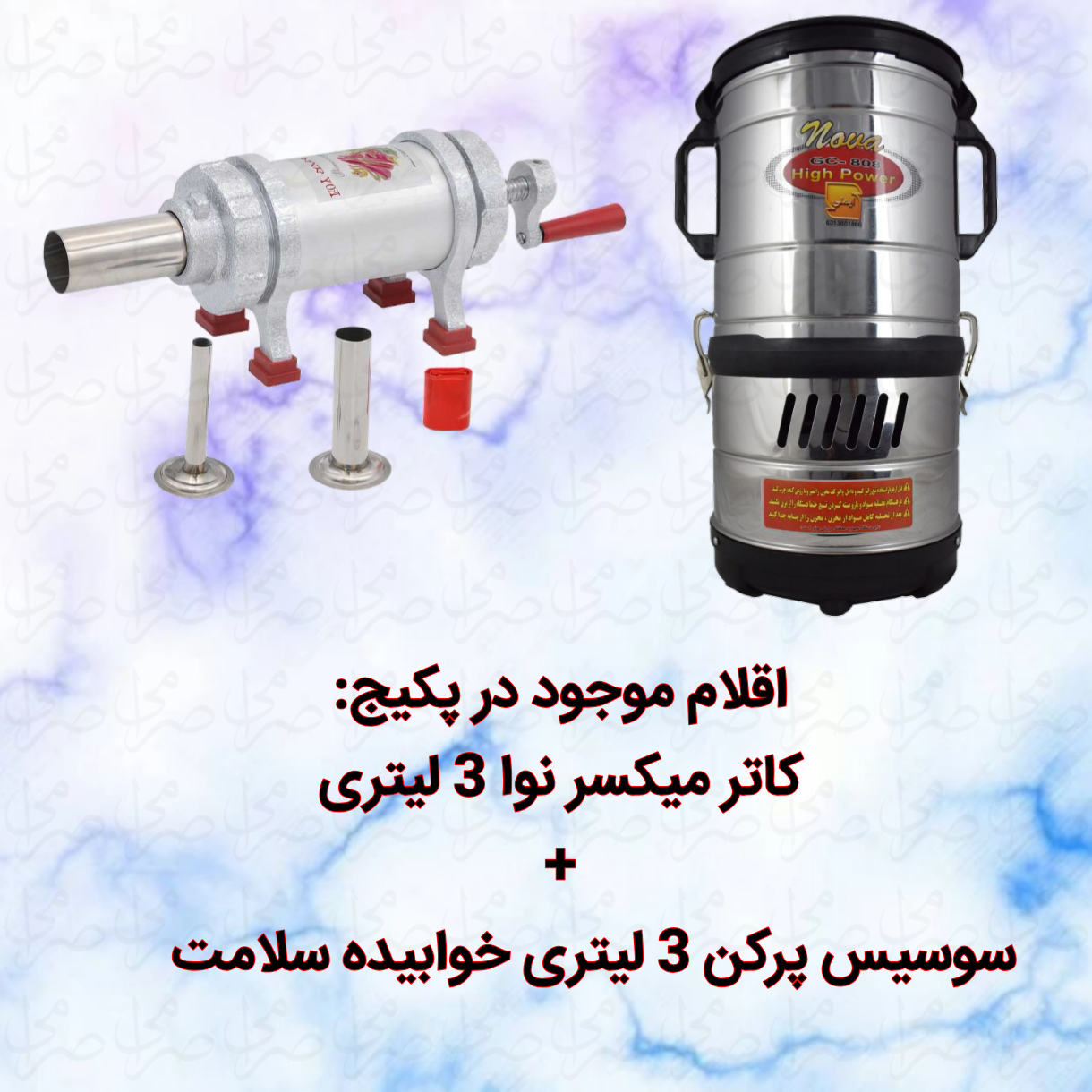 پکیج کامل کاتر میکسر(غذاساز) 3 لیتری نوا همراه با سوسیس پرکن خوابیده 3 لیتری سلامت